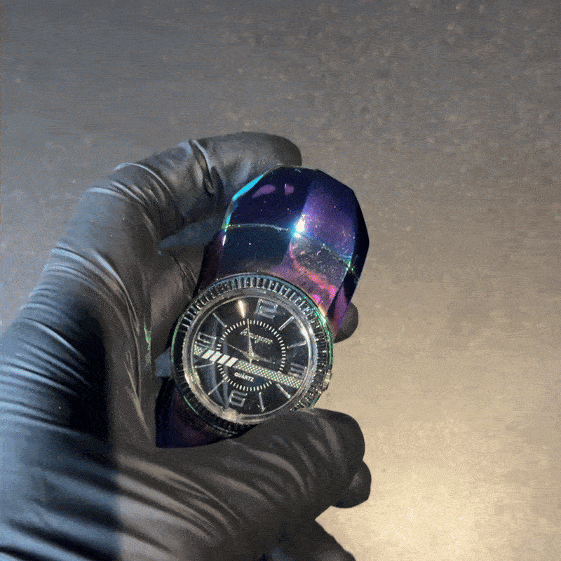 Design exclusivist, cu carcasă metalică și finisaj multicolor irizat